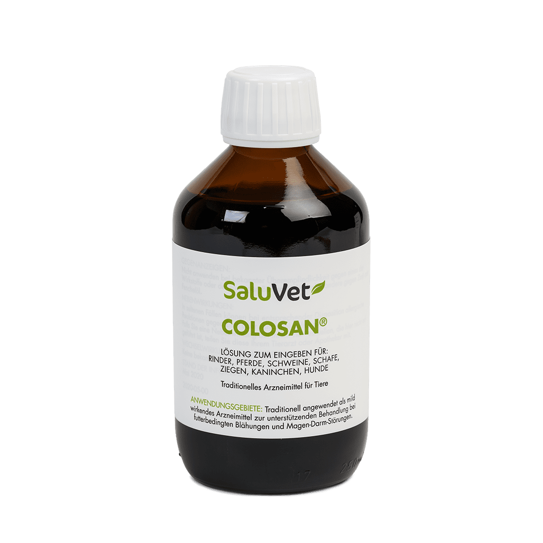 ColoSan® ist ein traditionell angewendetes, mild wirkendes Arzneimittel zur unterstützenden Behandlung bei futterbedingten Blähungen und Magen-Darm-Störungen.