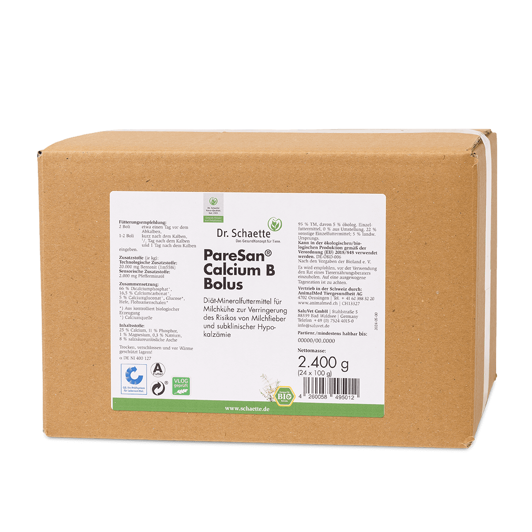 PareSan® Calcium B Bolus kann in der ökologischen/biologischen Produktion gemäß der Verordnung (EU) 2018/848 verwendet werden. DE-ÖKO-039.