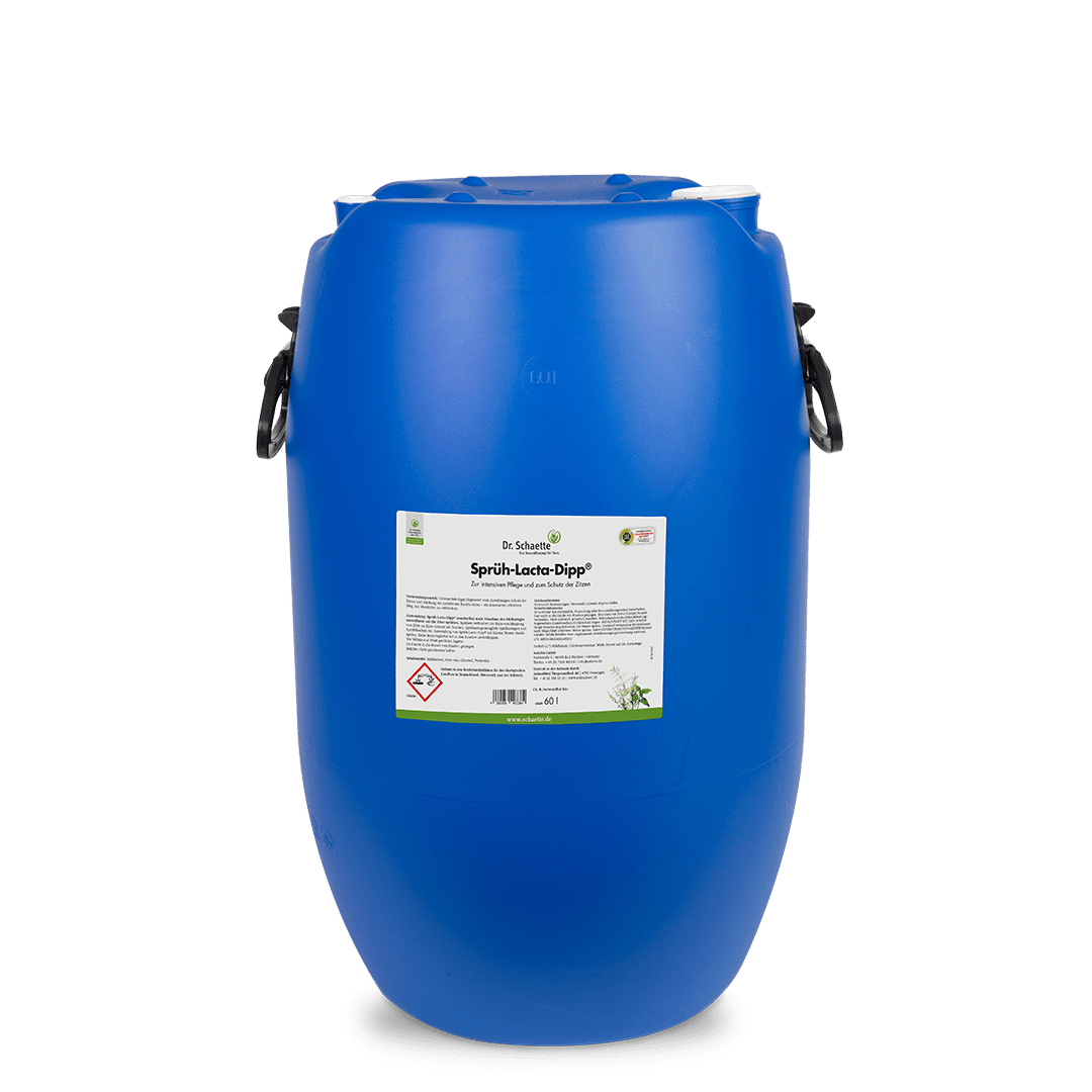 Dippmittel für Milchkühe, Milchschafe und Milchziegen mit Milchsäure zum intensiven Schutz der Zitzen. Natürliche Wirkstoffe, ohne Iod oder Chlor.